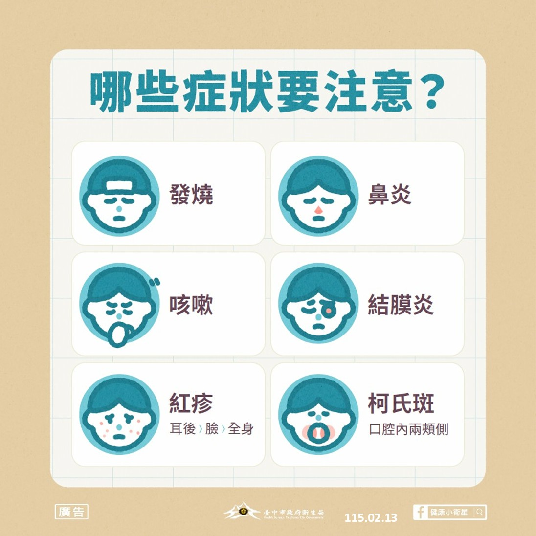 台中市政府衛生局今(13)日接獲疾病管制署通知,新增一名境外移入麻疹確診者,為台中市115年首例境外移入麻疹確診案,該個案可傳染期無公共場域活動足跡,初步匡列接觸者48人,市府衛生局將持續健康追蹤,全案預計監測至3月4日止。
