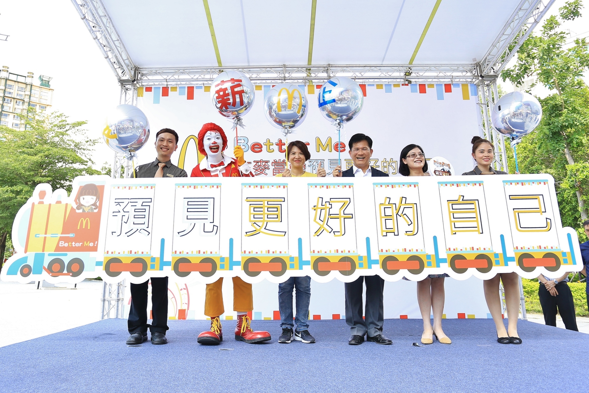 「招募體驗屋」徵才活動開幕典禮今日在台灣大道市政大樓府前廣場舉辦,現場佈置多處麥當勞招募氣球體驗屋,讓民眾深入了解麥當勞品牌文化,並能在現場進行面試;林市長、勞工局長黃荷婷、麥當勞中區營運部協理朱佩玲等人均出席參加開幕儀式。