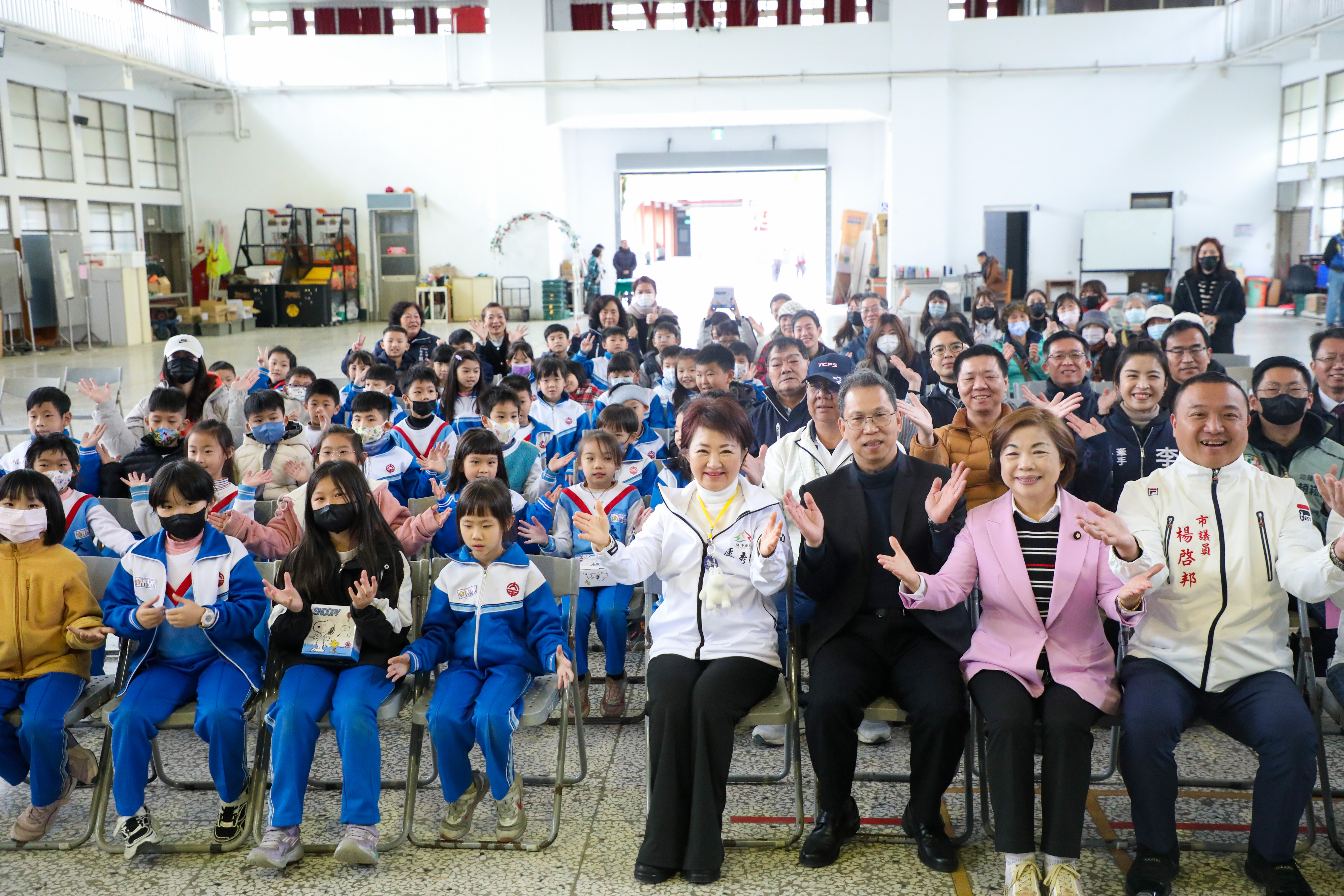 視察大甲區大甲國小禮堂拆除重建及宣布「台中尚泳」游泳池共構