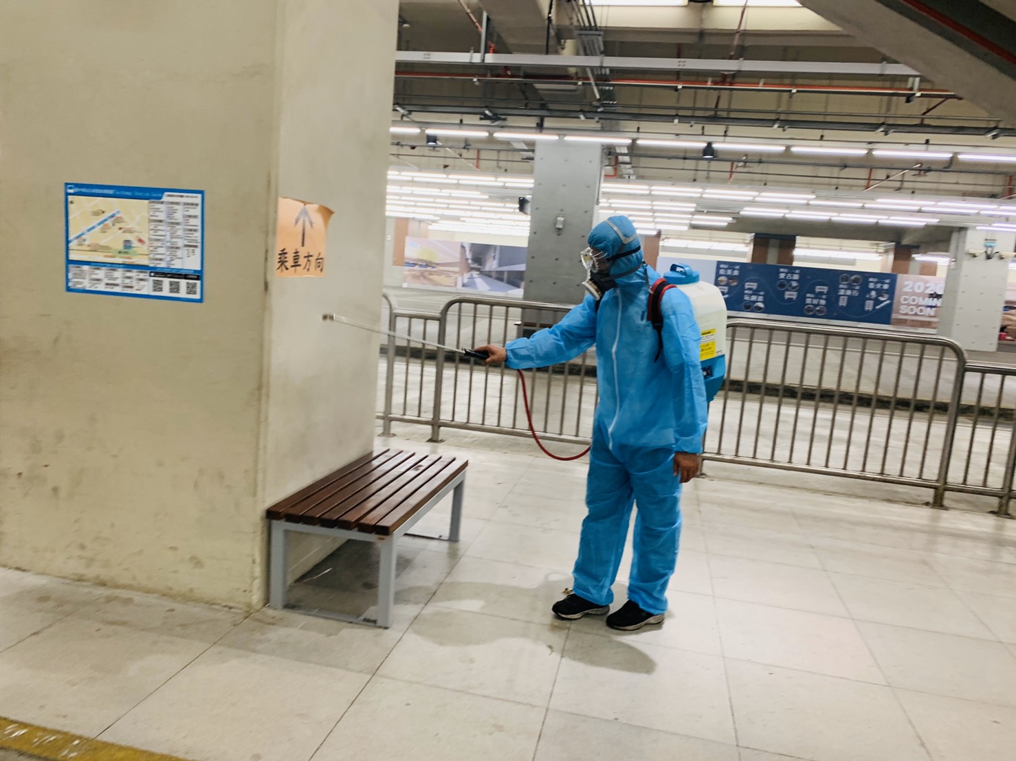 交通局長葉昭甫表示,因應疫情,交通局平時即派遣清潔人力進駐台中轉運中心,針對乘客常碰觸的電梯按鍵、電扶梯、手扶梯、扶手進行消毒,這次因應清明假期返鄉人潮,於今日凌晨時段進行全面深度消毒工作,加強防疫。他也提醒,為避免疫情擴散,請民眾不要在車站群聚與逗留,以維護自身健康。