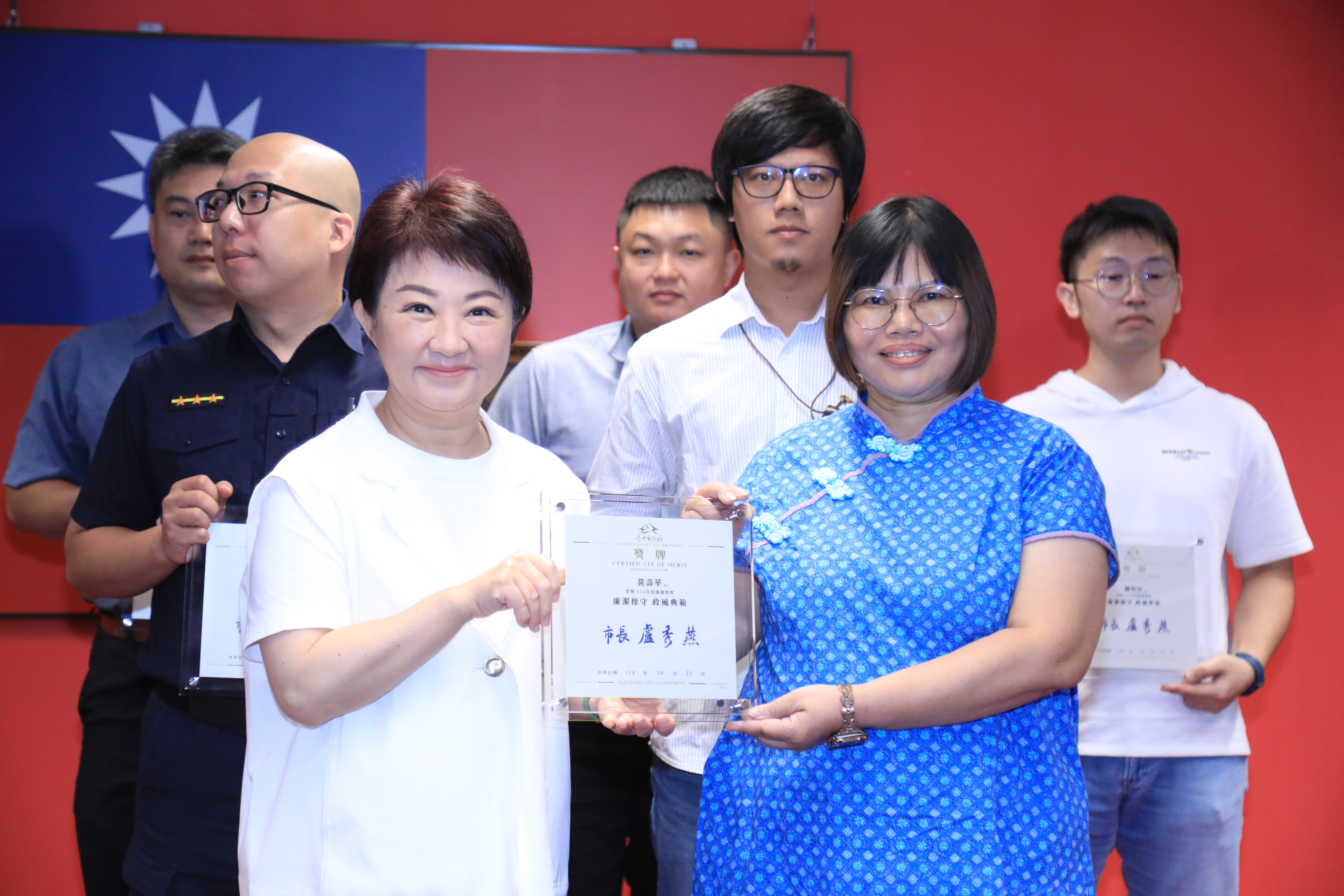 頒獎--臺中市政府114年度獎勵廉潔楷模表揚--與市長大合照